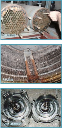 空調(diào)運行時空氣中大量塵埃會層層包裹散熱片,并逐步堵塞散熱片之間的微小空隙,影響機器的散熱,此時壓縮機電流增大,運轉時間延長,耗電量顯著增加。 實驗表明,散熱片上的積灰厚度達0.3mm,壓縮機的工作時間將延長一倍,空調(diào)的用電量增加2.4倍;(如一間房,清洗前降至設定溫度需要15分鐘;而清洗后降至設定溫度僅需十分鐘,則壓縮機可少工作5分鐘,從而結點30%)。 對于水系統(tǒng)而言,系統(tǒng)結垢1毫米,制冷效率下降34%,同時開啟兩臺制冷機組輸出的制冷能力,實際上變成只有一臺設備輸出的制冷量,隨著結垢程度的不斷增厚,制冷能力還會下降,能耗也會上升。 壓縮機正常情況下的工作溫度為50-58度,當翅片積灰嚴重時,由于無法充分散熱,壓縮機的溫度會上升到100度以上,壓縮機冷凍油基本上失去了潤滑作用,其磨損也大大增加,故障率也會大幅提升。 |