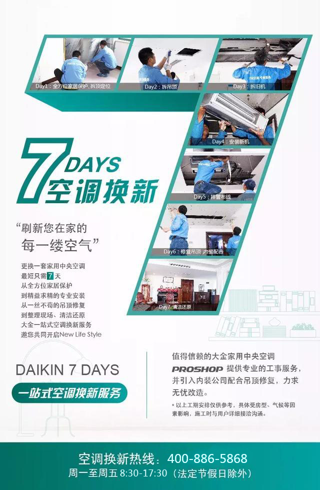 家用中央空調(diào)想改造?今后您不必再為此擔心,放心交給大金PROSHOP家用中央空調(diào)專業(yè)店,7日無憂改造,從保護到拆機,從安裝到修復(fù),專業(yè)的團隊帶您開啟專屬您和家人的NEW LIFE STYLE。